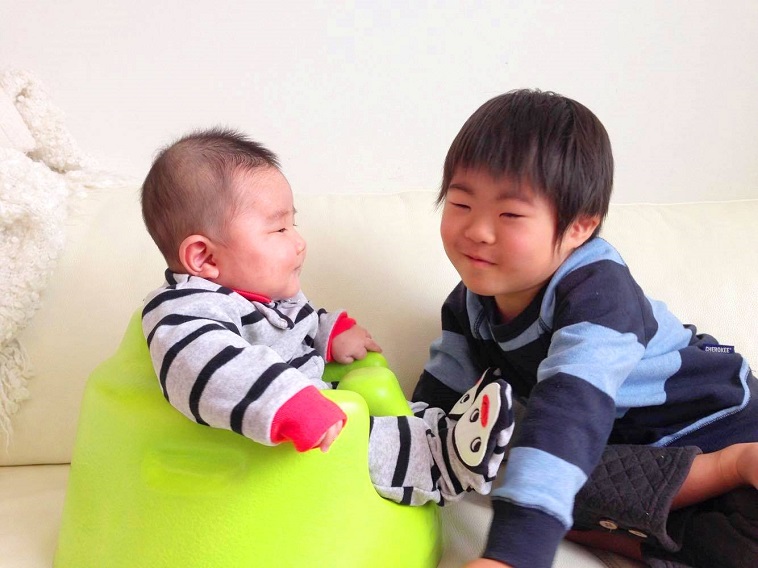 朋成くん(左)と、お兄ちゃんになってうれしそうな脩平くん